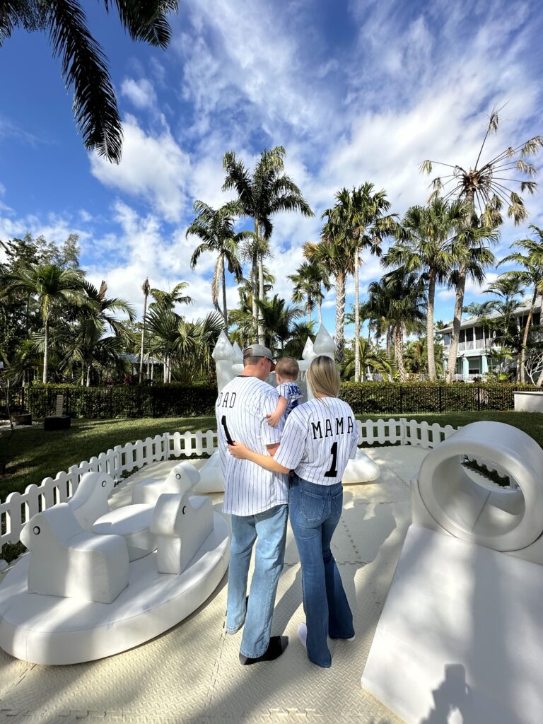 We leaned into the baseball theme from the very beginning. Jaxon wore a baseball outfit that instantly set the tone, and we matched him with coordinating jerseys for Mom and Dad. It made the photos feel cohesive and added such a fun, personal touch to the day.