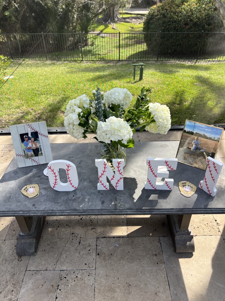 We also loved styling small decor moments around the party, including a “ONE” table with baseball-themed letters and photos from Jaxon’s first year.