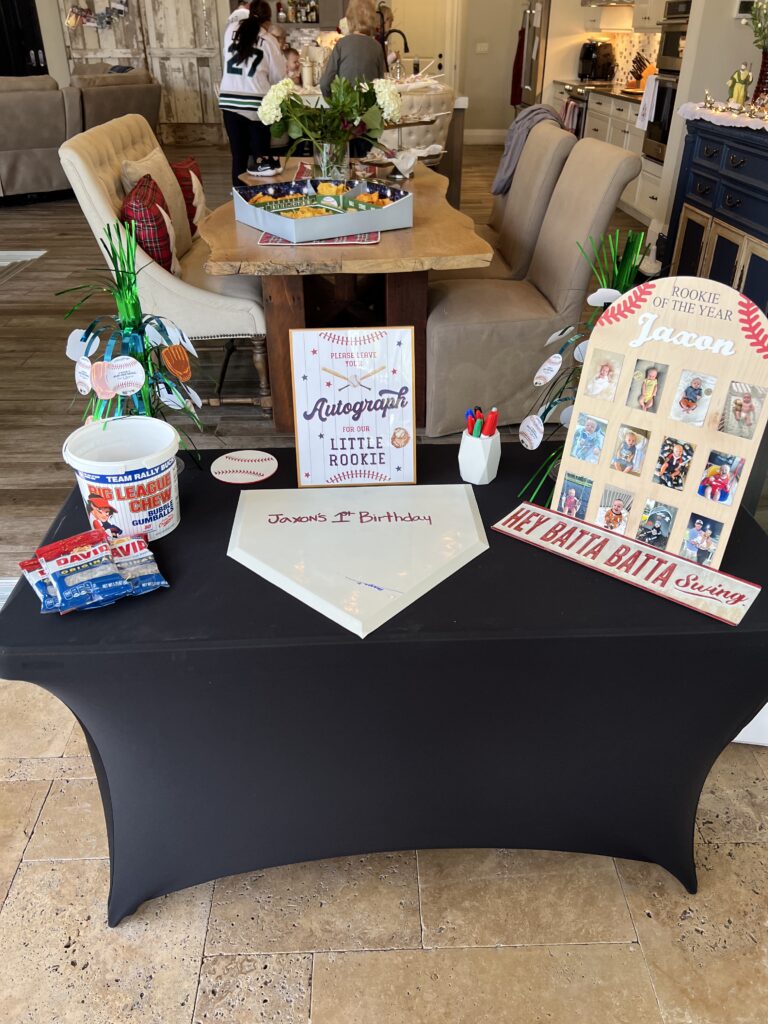 One of the most meaningful details from the day was the autograph station. We had a home plate out for guests to sign with Sharpies, which turned into one of our favorite keepsakes from Jaxon’s first birthday.